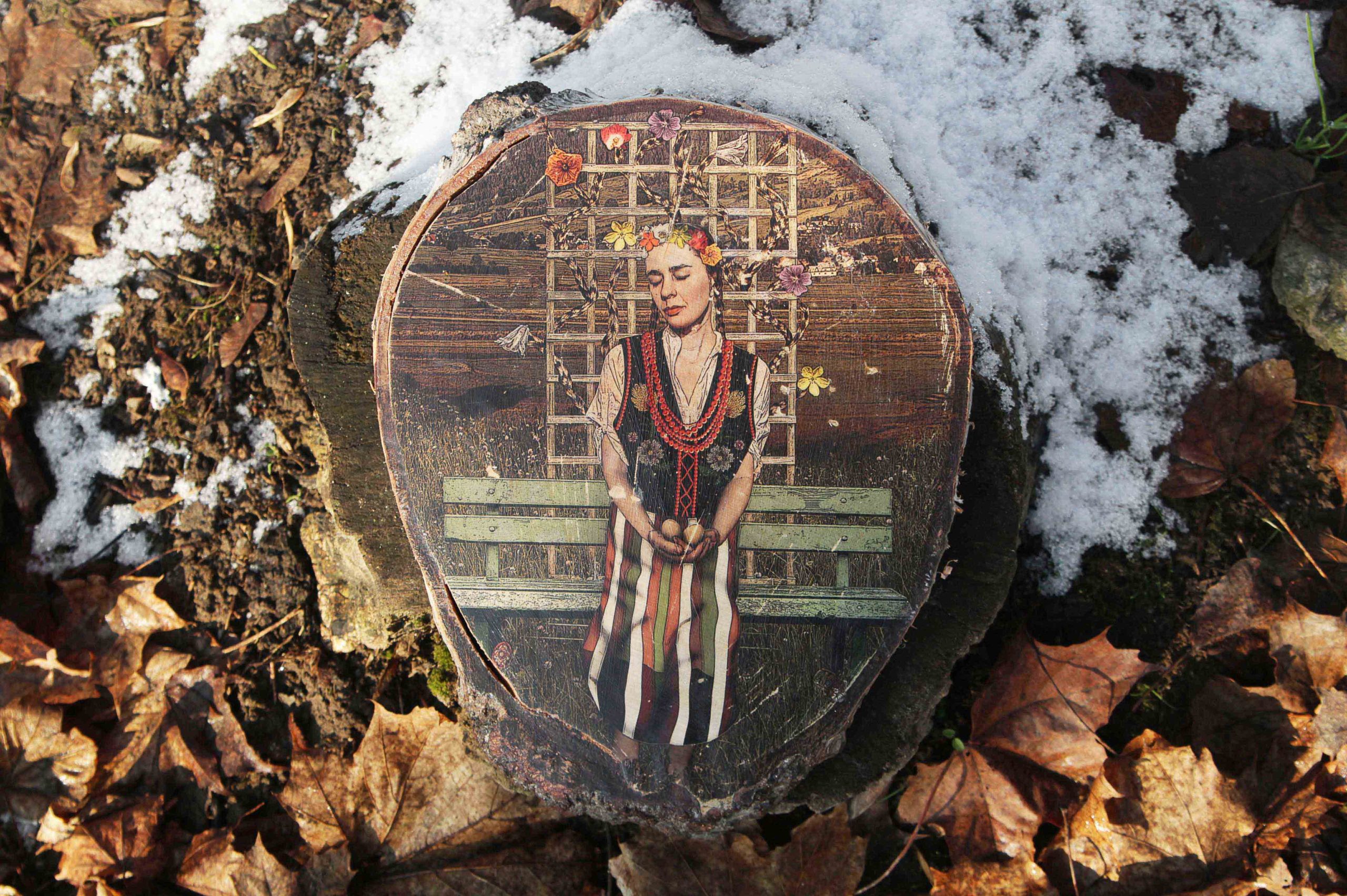 Od jakiegoś czasu chciałam eksperymentować z metodą mixed-media zwaną decoupage. Decoupage polega na przyklejaniu na powierzchni zdjęcia, tak aby efekt wyglądał na ręcznie malowane. Interesował mnie kontrast pomiędzy cyfrową sztuką (odbitki fotomontażu), który łączę z naturalnym obiektem (drewnem). Uwielbiam ten efekt i mam nadzieję, że w przyszłości wrócę do pracy z drewnem. Wybrane fotomontaże (stworzone, zanim zaczęłam eksperymentować z decoupage) były również moimi pierwszymi krokami w poszukiwaniu nowego kierunku artystycznego. Chciałam stworzyć coś, co odzwierciedlałoby moją artystyczną podróż, czyli połączenie nowej technologii z tradycyjną.